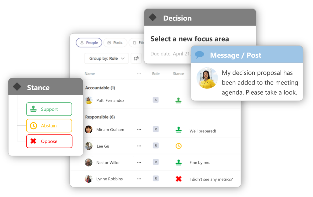 Decision proposals, rationale, and ownership stay traceable, and approvals move forward in Teams.