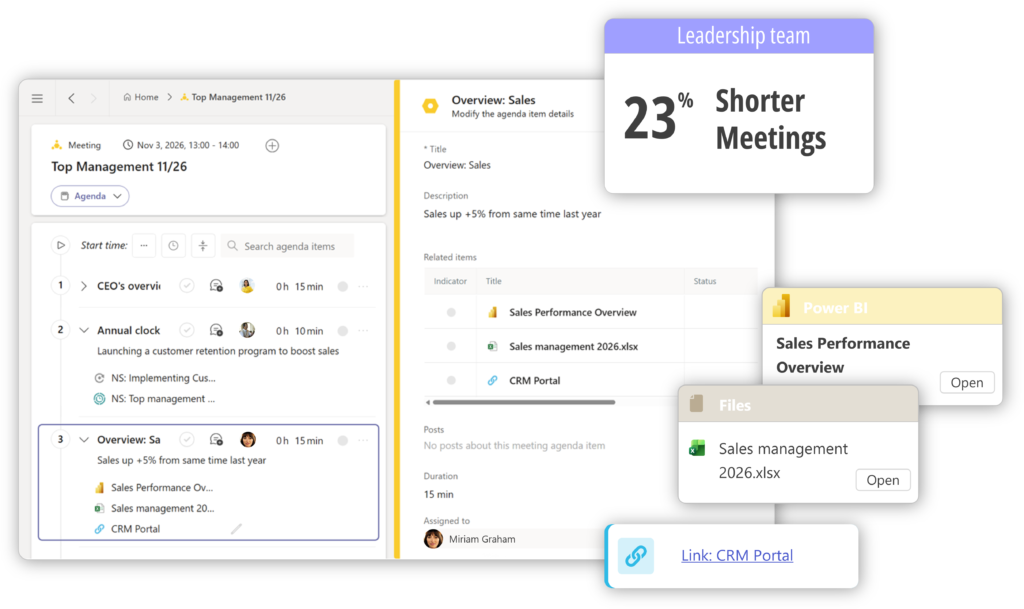 Fingertip supports the full leadership rhythm inside Teams, from everyday coordination and delivery follow-through to strategic objectives, investments, and approvals. These are some of the current use cases at our customers, showing how the same operating layer scales across different levels of leadership work.Leadership team weekly meetings