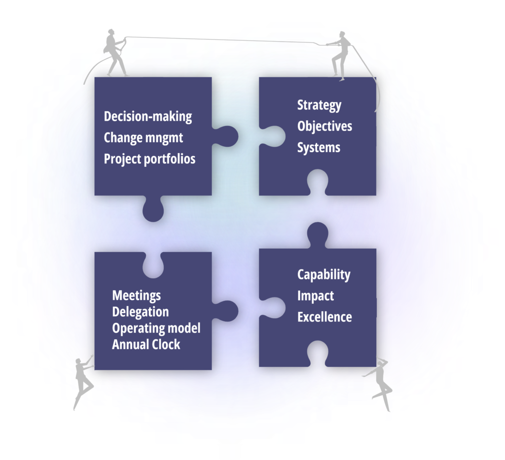 It creates a shared leadership layer where decisions, meetings and objectives lead to action.