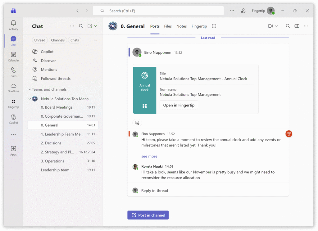 Fingertip’s annual calendar is integrated with Microsoft Teams, ensuring that all team members are on the same page and working towards common goals.