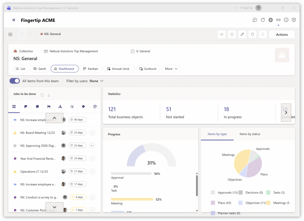 Start your personal 14-day Fingertip Trial to see how you could build your strategic and operational calendar in one shared view. Keep goals, reviews, and board materials aligned seamlessly inside Microsoft Teams. No setup or credit card needed, sign up and get started in minutes.
