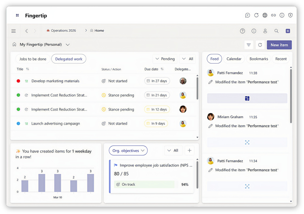 Fingertip 5.0 tuo johtamisen hajanaisista keskusteluista ja tiedostoista yhteen hallittavaan kokonaisuuteen Microsoft Teamsissa.