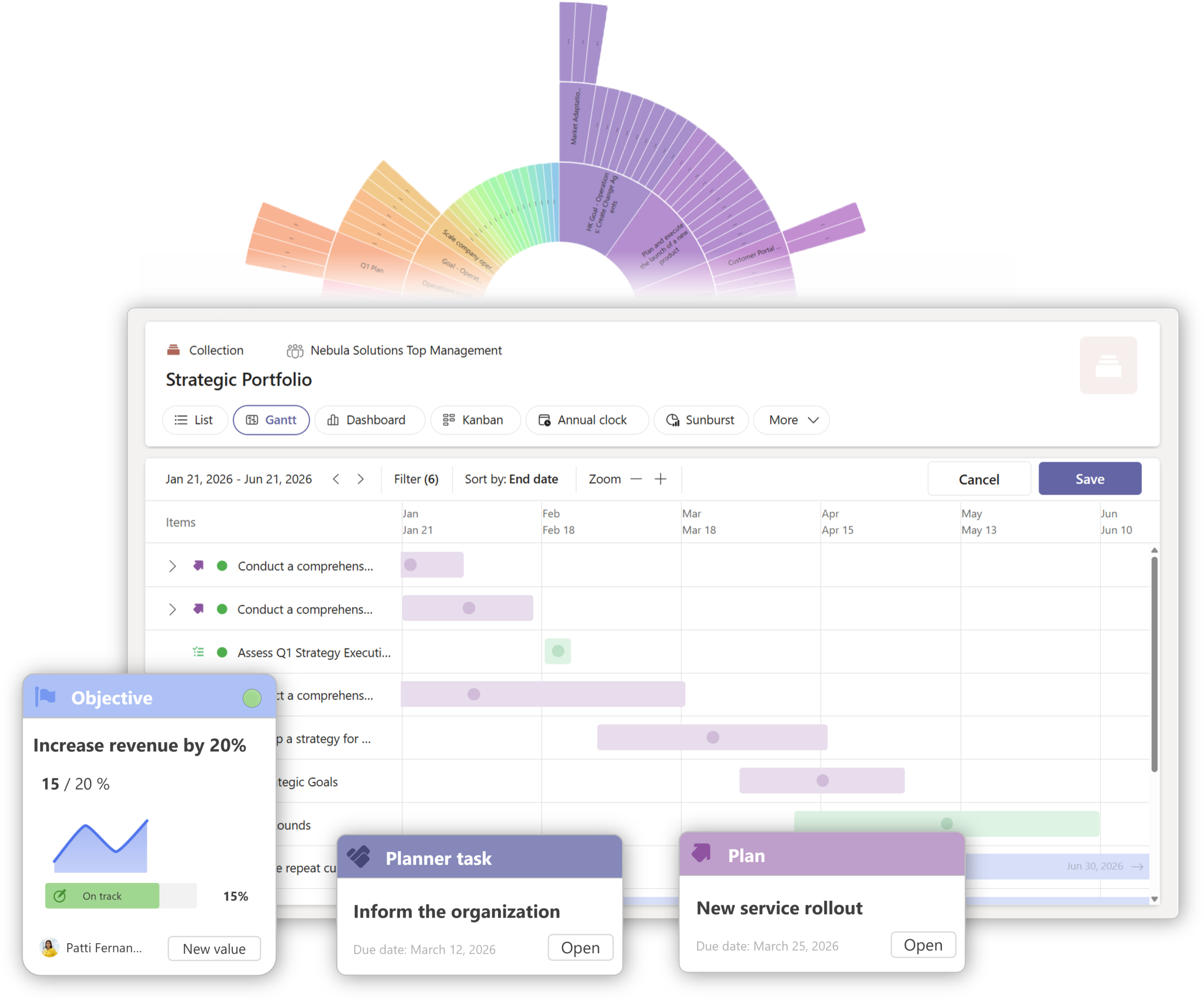 Hallitse kaikki hankkeet eri tiimeissä ja eri strategioissa.