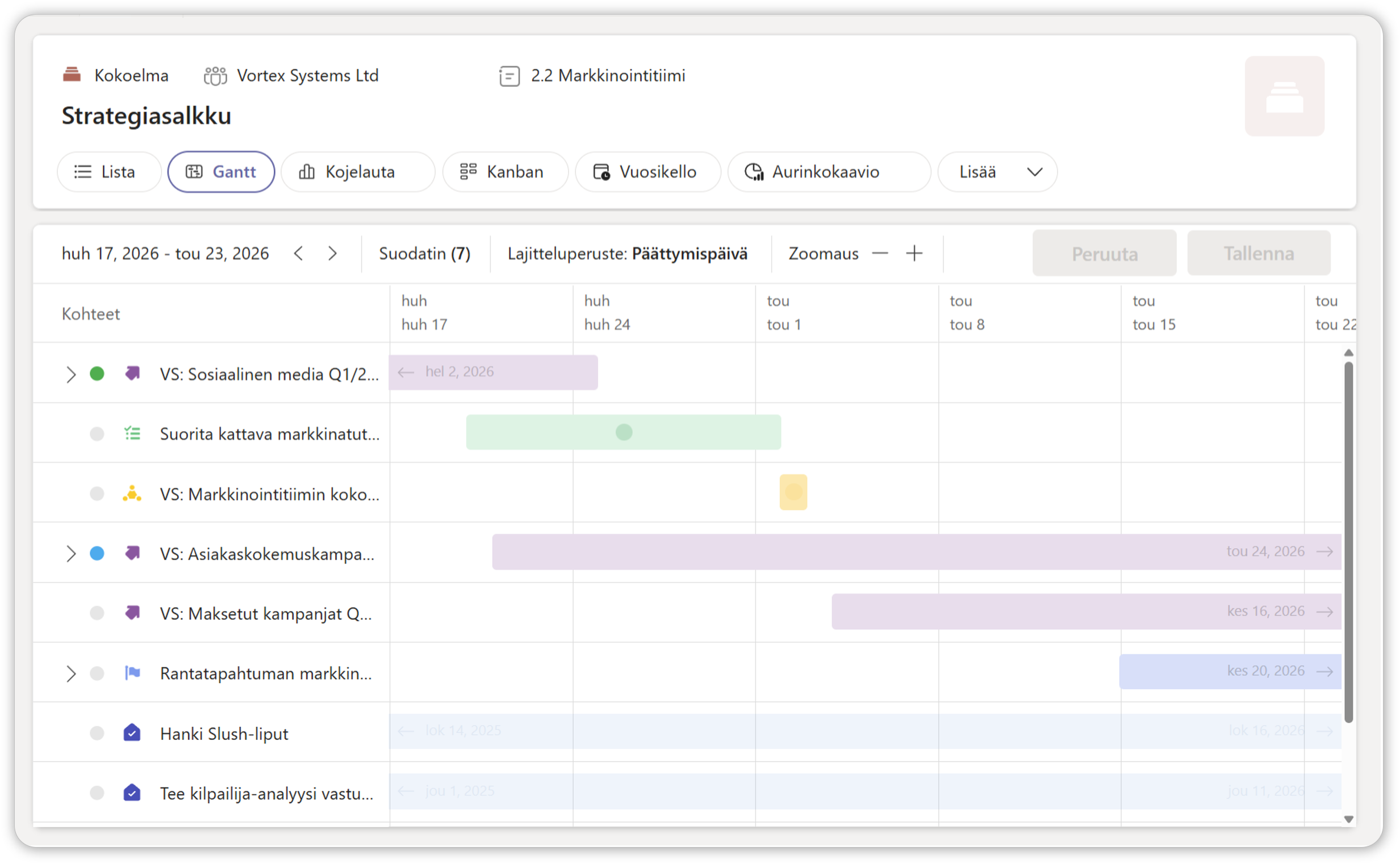 Yhdistä organisaation eri yksiköiden ja vastuiden hankkeet sekä toiminnot yhteen näkymään koko vuoden osalta mahdollistaen yleiskuvan ja tehokkaan johtamisen.