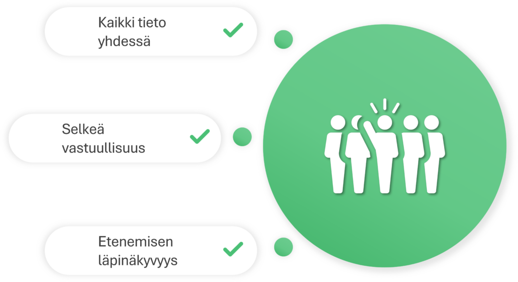 - Valmistelu, toteutus ja seuranta tapahtuvat samassa paikassa