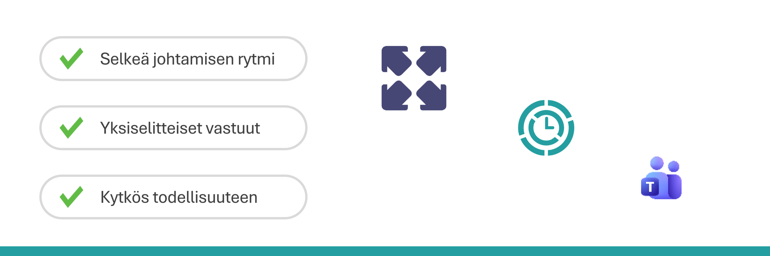 - Johtamisen rytmi pysyy selkeänä ja näkyvänä Teamsissa