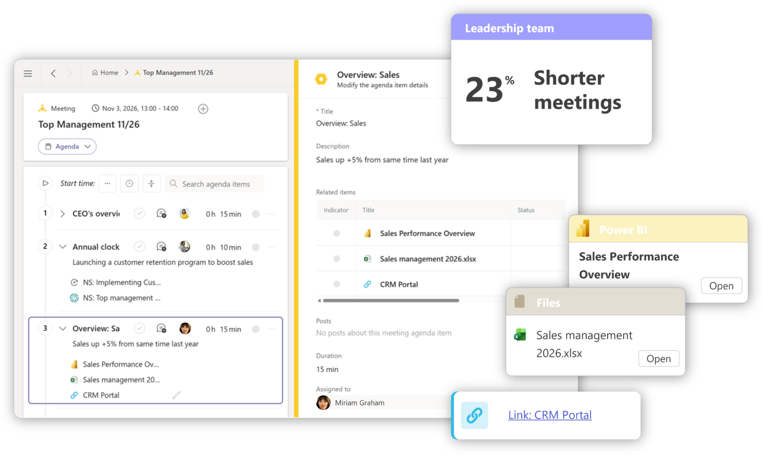 Preparation, discussion, decisions, and next steps stay connected in your Microsoft Teams environment.Decisions have clear and accountable ownership