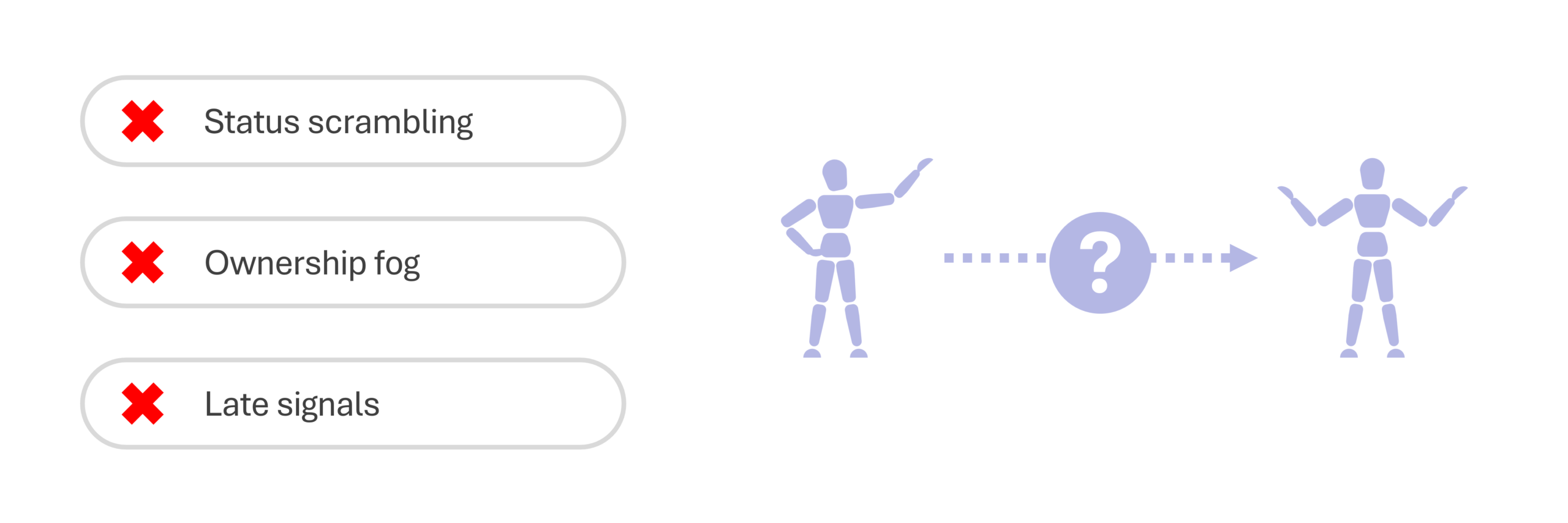 “Shared” goals become everyone’s side project until the quarter ends and excuses start. - You discover misses when it is too late
