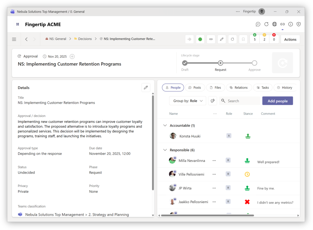 Bring steering, decisions, and follow-through into one Teams-native system for real-time control.
