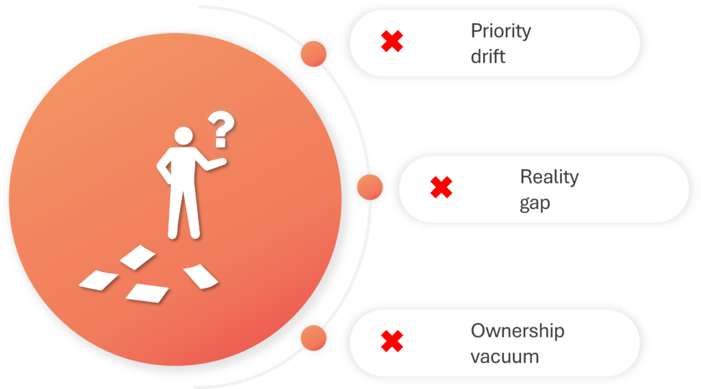 - Priorities drift between meetings
